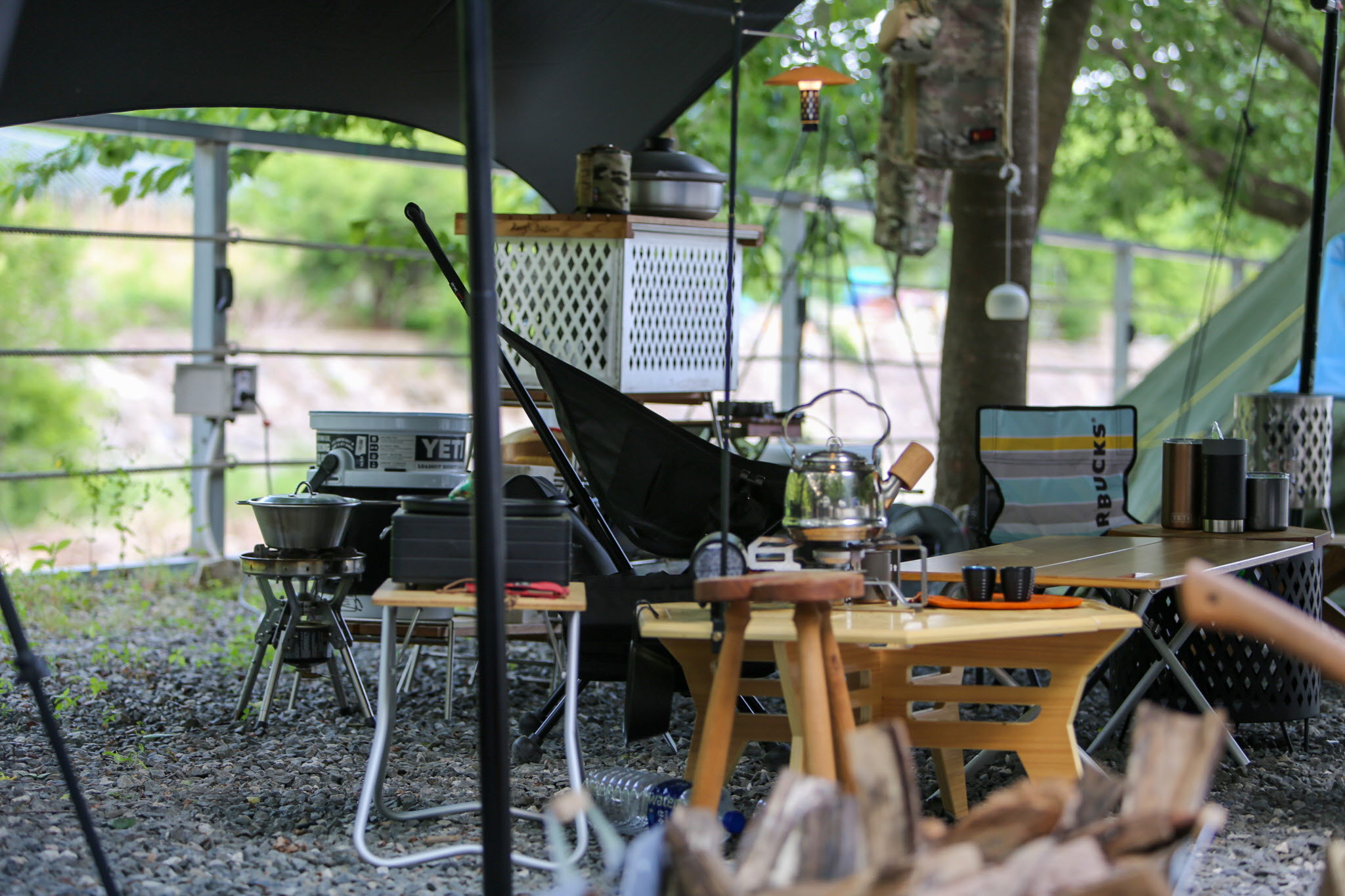 시원한 나무그늘이 한가득 자리잡은 자연과 하나되는 캠핑공간